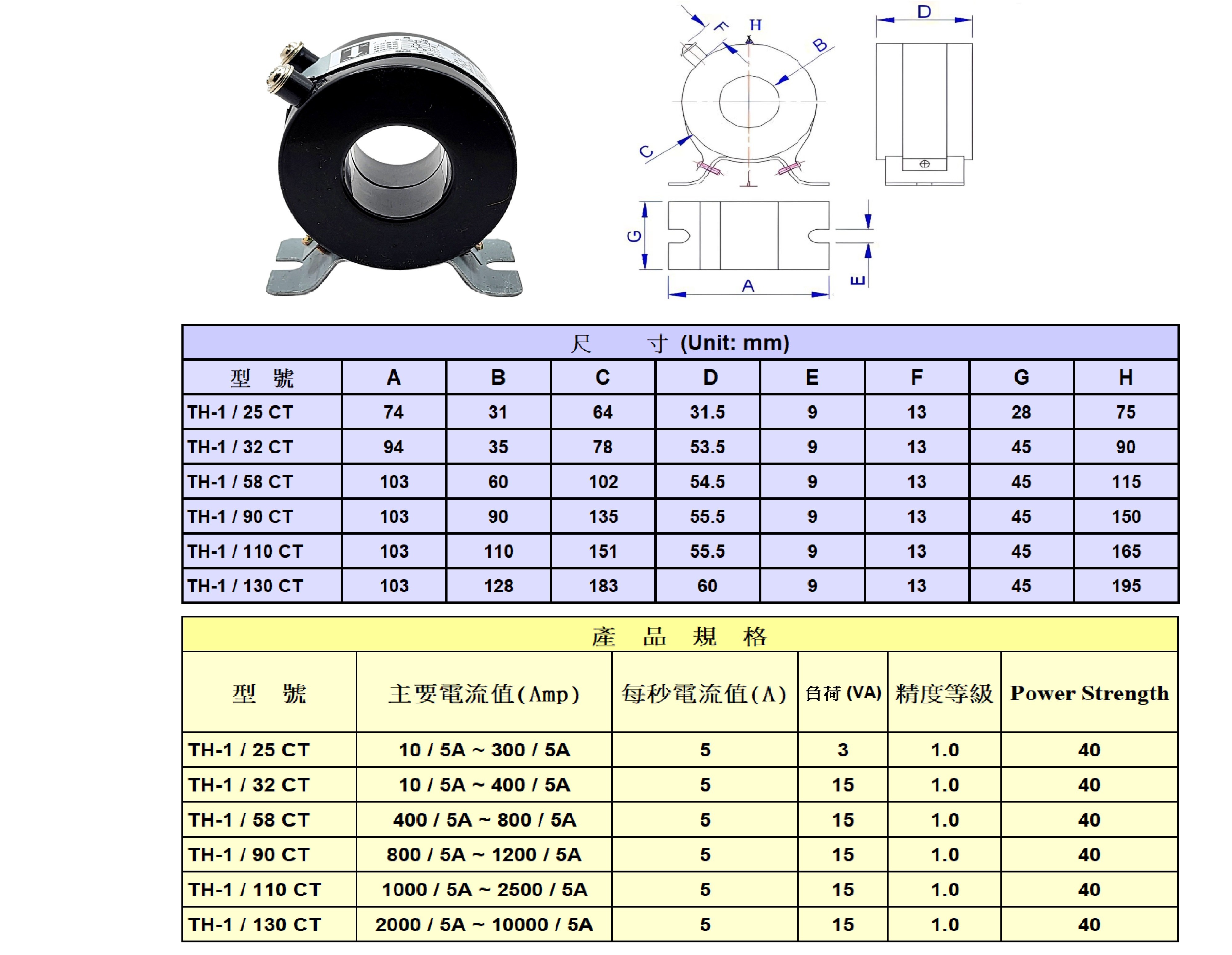 - 可多圈貫穿調整倍率:依據應用需求靈活調整一次電流比