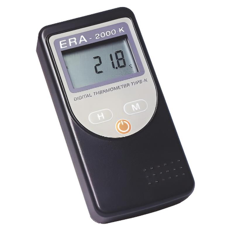 ERA-2000K 數位溫度計|K型熱電偶專用|高精度快速反應 ERA-2000K手持式數位溫度計,支援K(CA)型熱電偶輸入,量測範圍涵蓋-200°C至+1372°C,適用食品加工、金屬熱處理、空氣環境監測等多種場域。具備±0.1%高精度、0.3秒快速反應,搭配LCD顯示與自動記錄功能,提升現場檢測效率與準確性。支援DC 9V電池與AC電源供應,輕巧設計方便攜帶,附軟質收納包。適合技術人員、品管工程師與環境檢測專業使用。