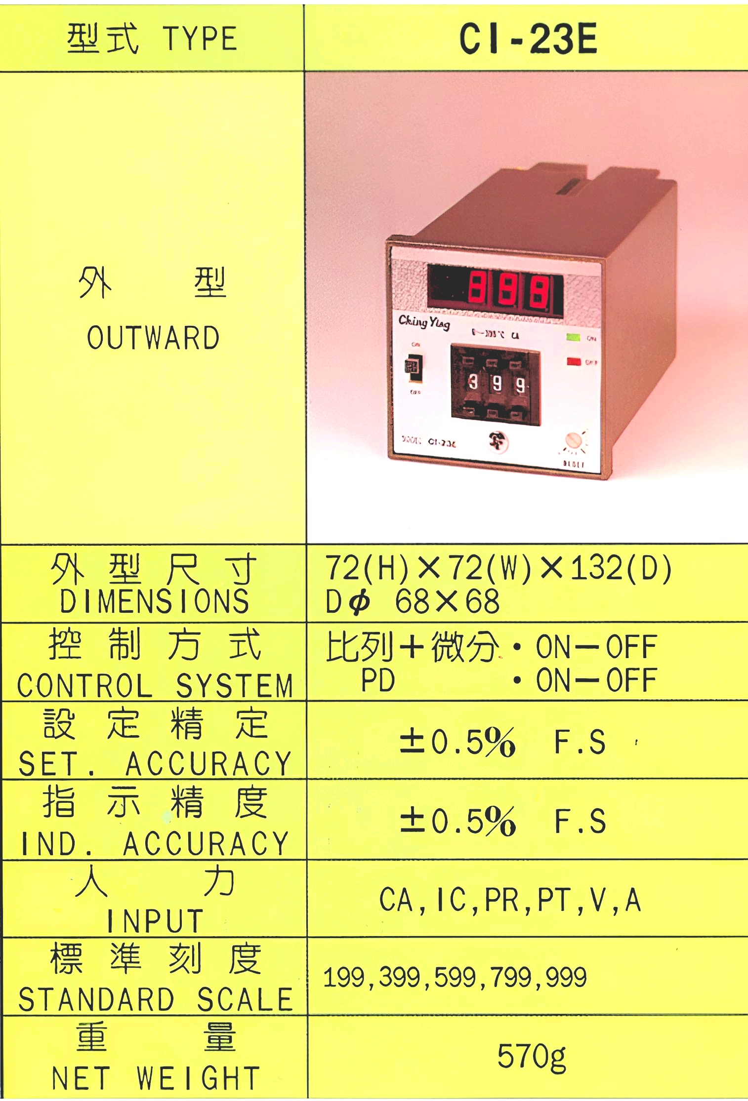CI-23E 電流/電壓控制/溫度控制器 72x72系列